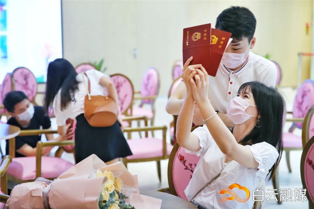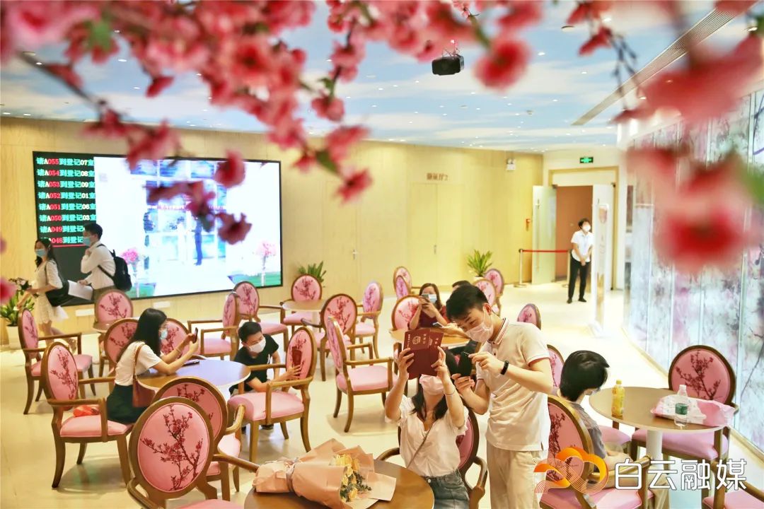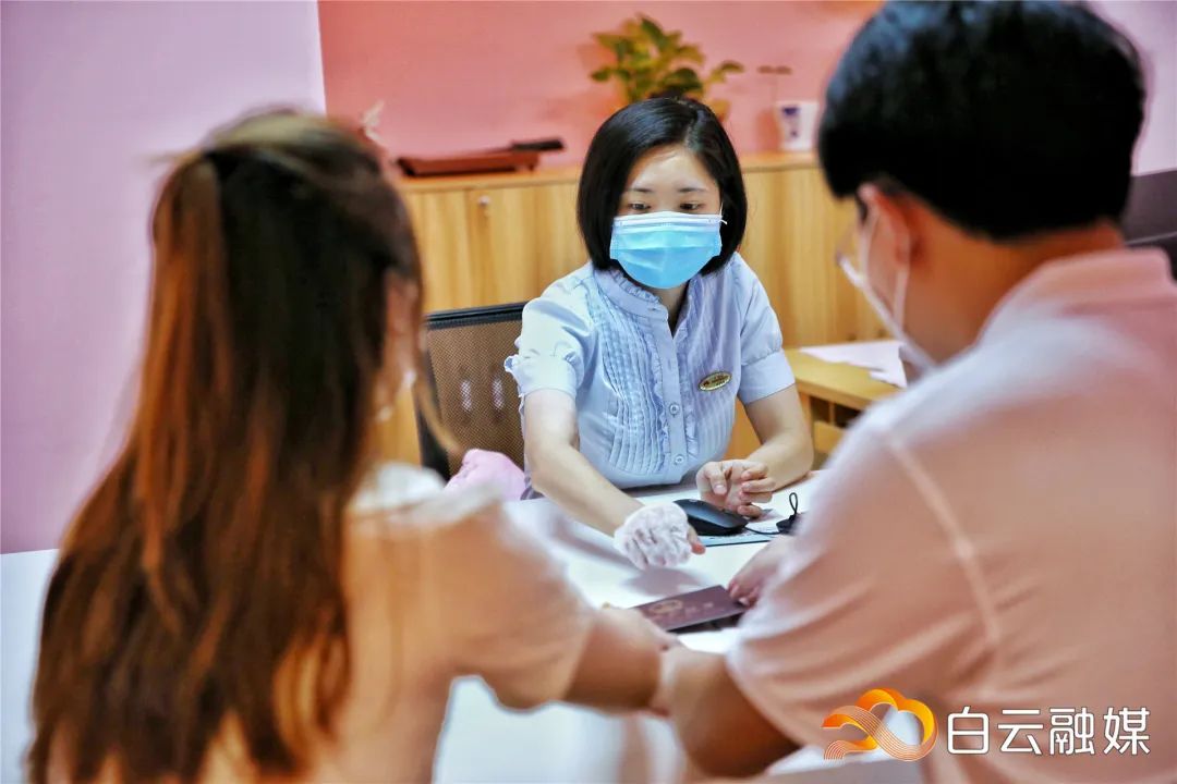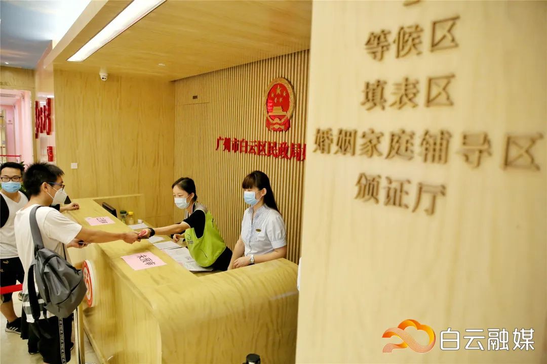 “不管是接待人员还是工作人员,服务态度都非常热情耐心,从入口排队进场就必须保持一米的距离,大堂有清洁阿姨在消毒,大家都自觉隔开一张桌子,保持一米的社交距离。”从增城区前来领证的王先生和王太太如是说。