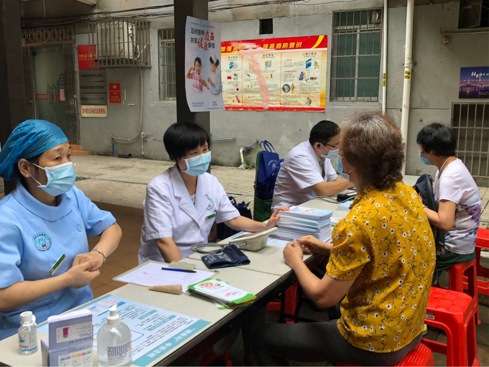 “阿叔,您的血压有点高,以后要多注意。高血压是常见病,成年人中发病率高达25%,很多人会在没有任何症状下发病,不是您以为身体没有不舒服就没事的,我们建议您要定期体检。”当天上午,在彩虹街园中园社区小广场,彩虹街社区卫生服务中心的医护人员现场开诊,为街坊测血压做简单的身体检查,科普健康知识。