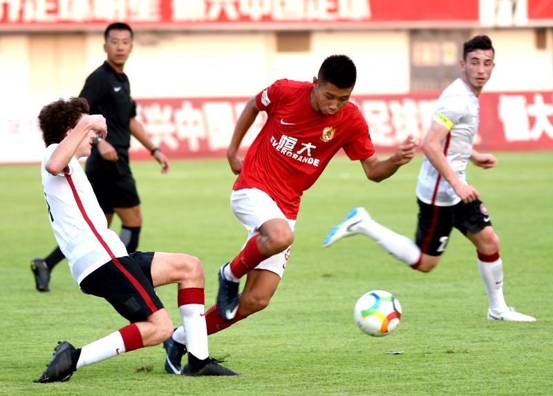 2018年8月19日,“恒大杯“国际足球冠军赛,广州恒大对阵西悉尼流浪者,谭凯元带球突破。