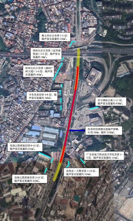 环评同时提出,为减少项目两侧的交通噪声,榕树头社区首排、卡布奇诺首排、君立国际公寓、佳润云凯雅誉、佳兆业天墅首排、广东省电子职业技术学校首排、斯文井社区首排等敏感点面向广州大道一侧安装通风隔声窗,室内声环境质量可达到《民用建筑隔声设计规范》(GB50118-2010)的要求。