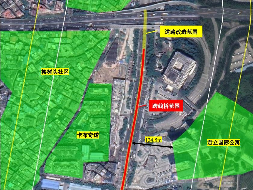 本次工程拟投资29618 万元对华南快速出入口-广州大道北节点进行快捷化系统改造,在广州大道北主线建设双向四车道跨线桥上跨规划同宝路和华快高速出入口,高架桥两侧设置双向四车道辅道,通过地面灯控与规划同宝路、华南快速出入口进行交通转换。跨线桥长度为550米,道路改造长度为760米。