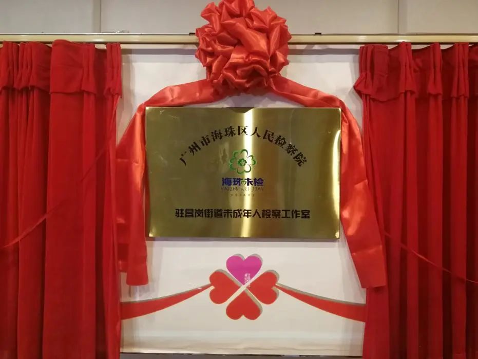 5月20日,广州市海珠区人民检察院在昌岗街道办事处启动驻昌岗街未成年人检察工作室(以下简称“未检室”)揭牌仪式。据悉,这是海珠区检启动驻辖内十八条街道未检室揭牌仪式的首站。市检察院、区委政法委、区教育局、团区委、区妇联相关负责人及志愿者、心理咨询师代表参加了仪式。