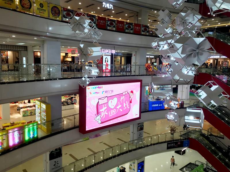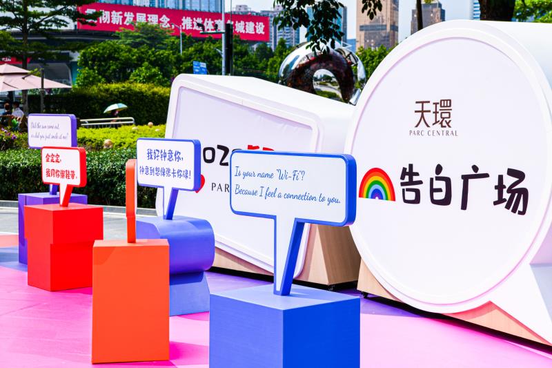 对此,商家们也纷纷开展场景式、体验式的线下营销活动,吸引消费者“走出家门”。5月20日,天环广场“Super Color潮·出色”为主题的场景格外显眼。从天环最大的户外北广场沿着阶梯向下延伸至B2层室内中庭,北广场成为全城首个户外告白广场,随处可见的情话或走心或俏皮。“5.20”当天,不少情侣来到这里打卡、告白。