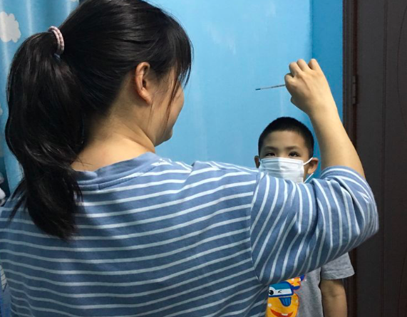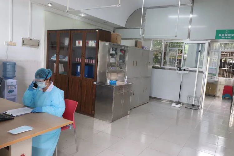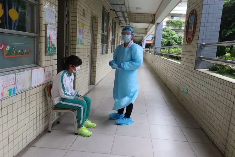 3、校医为其更换一次性医用口罩并引导至观察室。
