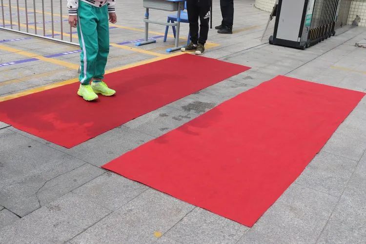 6、依次踩过喷洒消毒液的地毯和干地毯进行鞋底消毒。