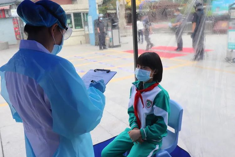 在临近复课前,龙洞小学的全体行政人员、校医、保安保洁员、班主任和老师代表及12名学生,再次进行了新冠肺炎疫情应急处置演练。