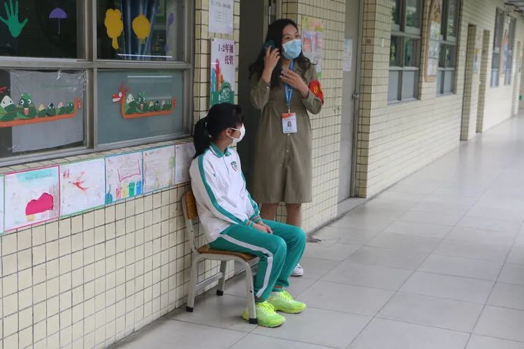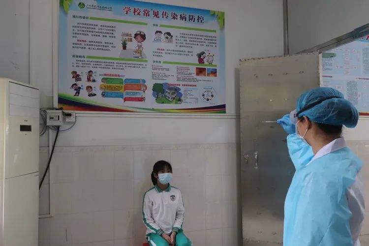 8、同时,班主任做好其它学生心理安抚,组织学生逐一进行体温测量,学生全部更换一次性医用口罩。