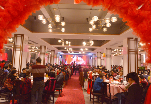 金满福喜宴是耗资2000多万打造的具有五星级标准设计的精品粤菜酒楼。营业面积为8000平方米,一楼为两大筵开90席多功能宴会厅,二、三楼具有西式风格装饰的中餐包房35间,三楼还设置筵开60多席的高级宴会厅,可提供2000个餐位同时就餐。欧式水晶大吊灯、舞台专业的电脑特效灯、大型LED屏、精美餐具,每一个细节都经悉心雕琢。