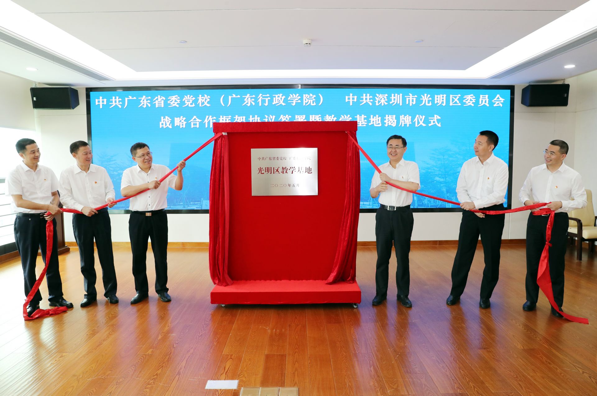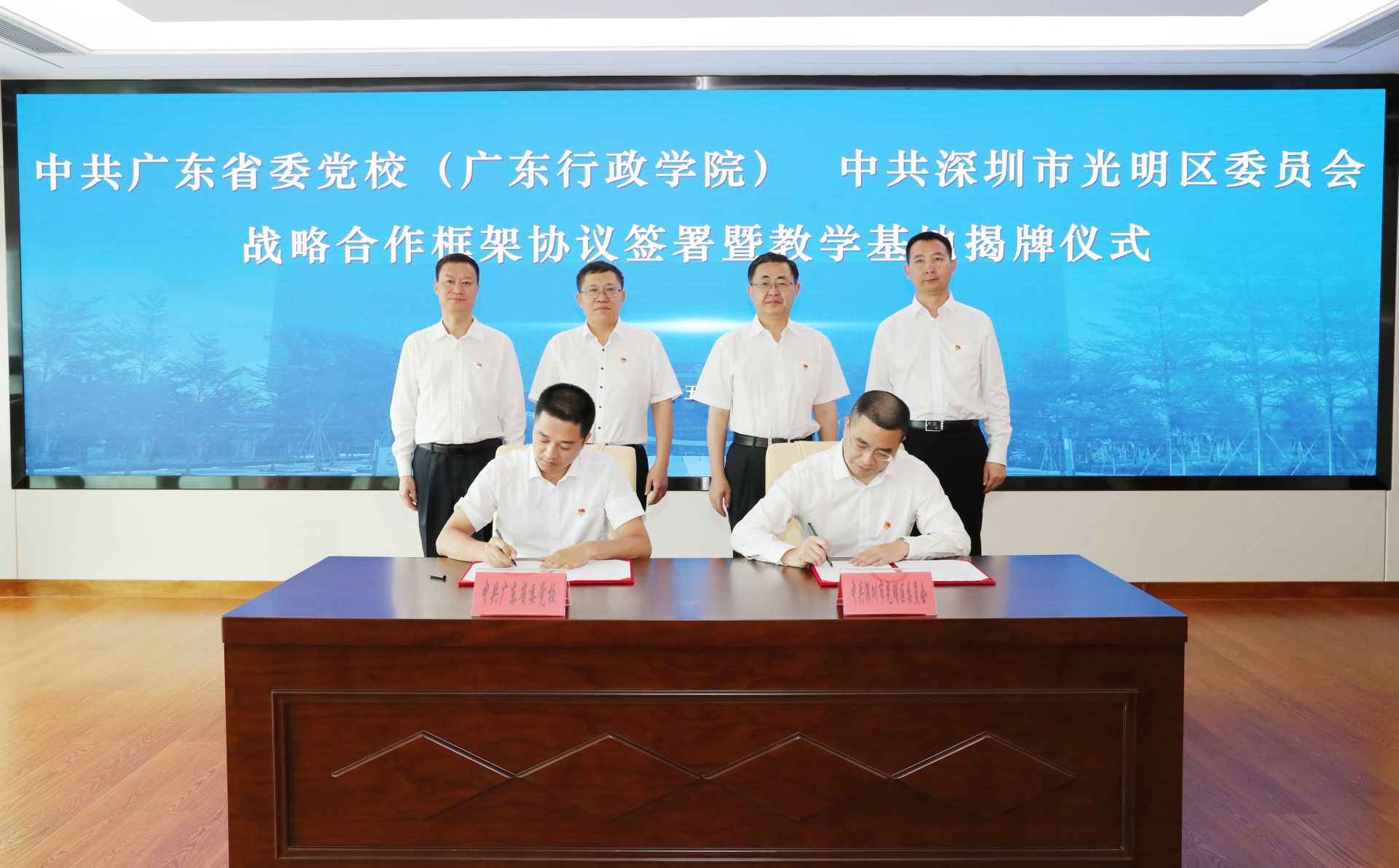 5月22日,中共广东省委党校(广东行政学院)(下称省委党校)与中共深圳市光明区委员会(下称光明区委)战略合作框架协议签署暨教学基地揭牌仪式在光明区公共服务平台举行。