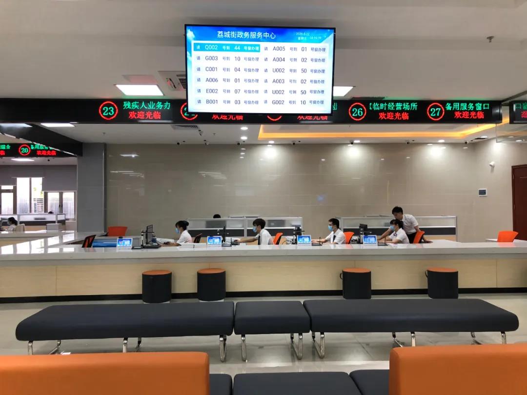 目前,中心开放办事窗口28个,共入驻民政、残联、来穗中心等9个部门,可办理业务117项,共链接后台36个。