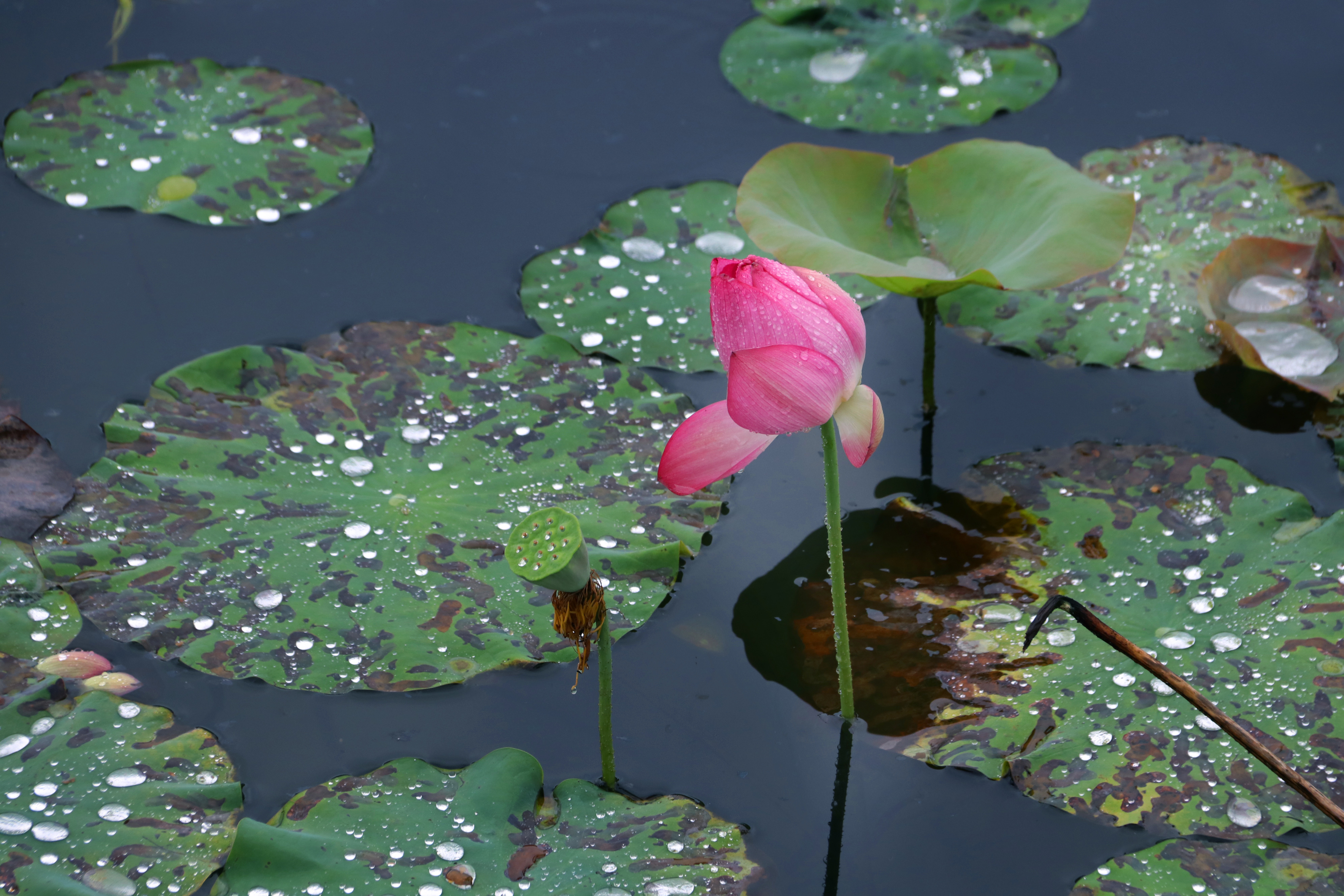 6—10月是荷花的最佳观赏期,届时满池荷花怒放,水下鱼戏虾游。