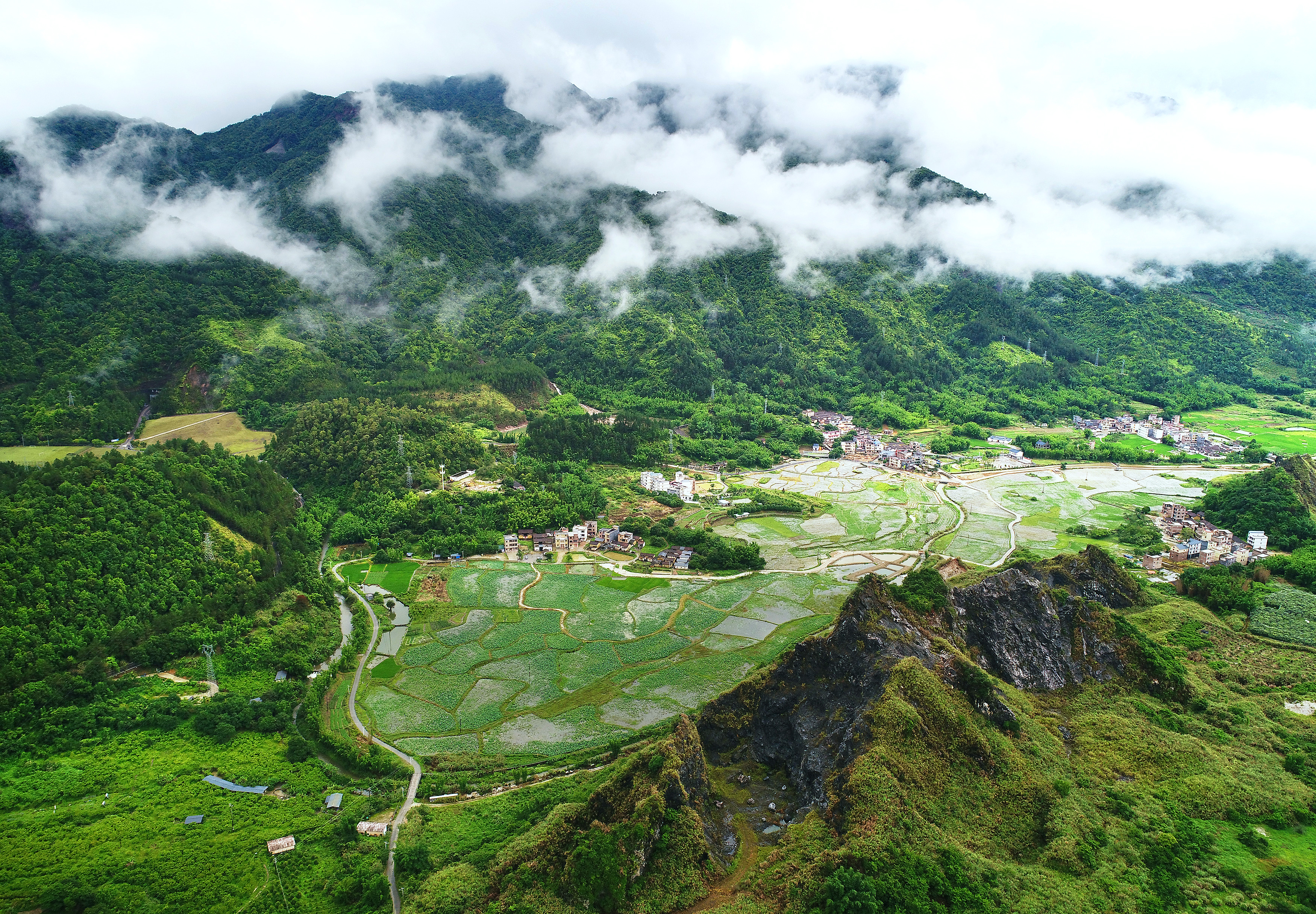 草埔村生态环境优美,溪流潺潺,青山环绕。