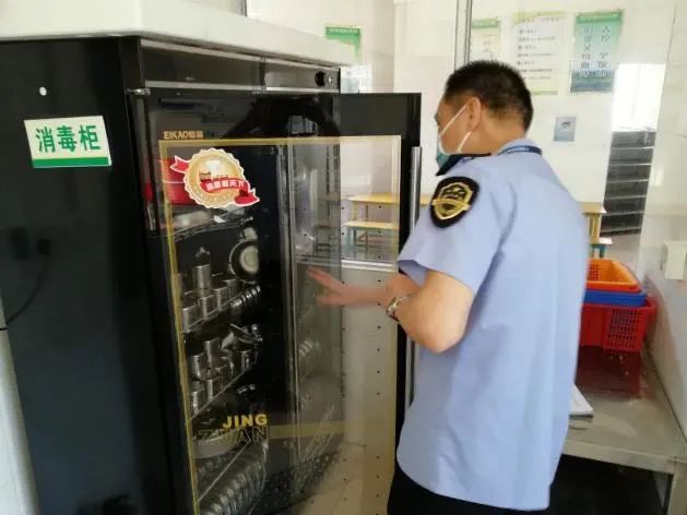检查学校饭堂的卫生清洁情况,检查餐具是否做好消毒工作,保障学生用餐安全。