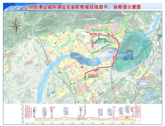 广清北延线自在建广清城际清远站北端咽喉引出,折向东进入燕湖新城,沿清远大道至江南水厂东侧折向北,于武广高铁清远站西侧设半地下清远东站,之后并行武广高铁跨越北江,在飞霞山西侧预留设站条件,向北至职教一路(省道377)折向西,至环城东路西侧设省职教城站。省职教城站西北侧预留存车场。线路全长19.601km,本项目共设车站4座,分别为燕湖新城、清远东、飞霞山和省职教城,其中飞霞山站为预留站。工程投资概算总额约64.5亿元。