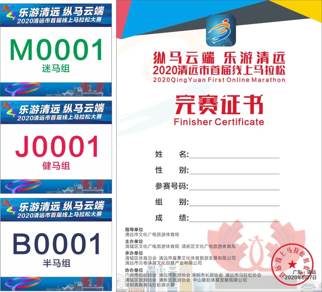 2020“纵马云端·乐游清远”首届线上马拉松大赛正式开跑时间为6月4日18:00,系统将自动生成电子号码布,届时运动员可进入系统自带的跑步软件开始跑步,单次完成所报项目的公里数后提交成绩,系统将自动生成完赛证明,最后进入抽奖界面。