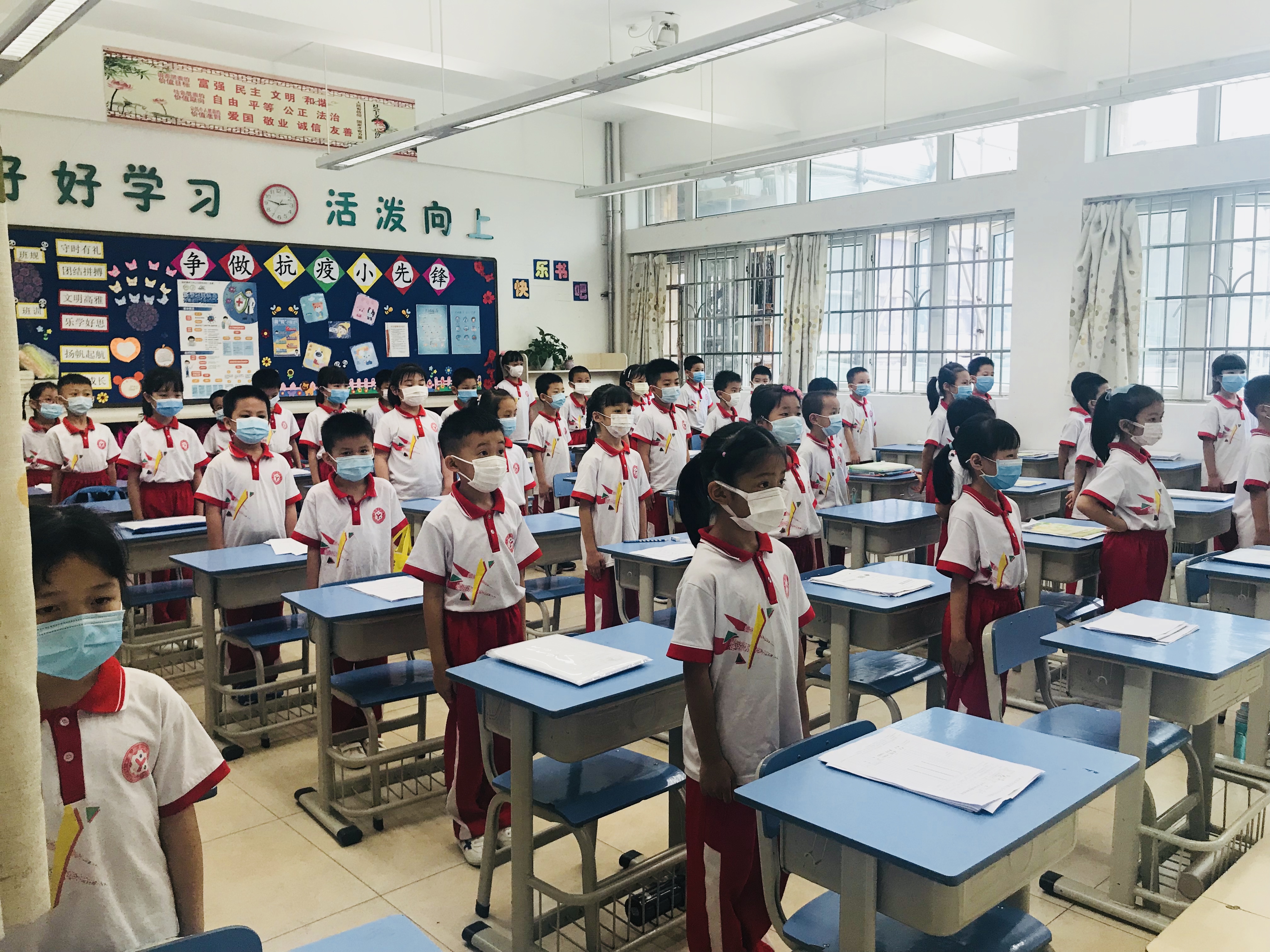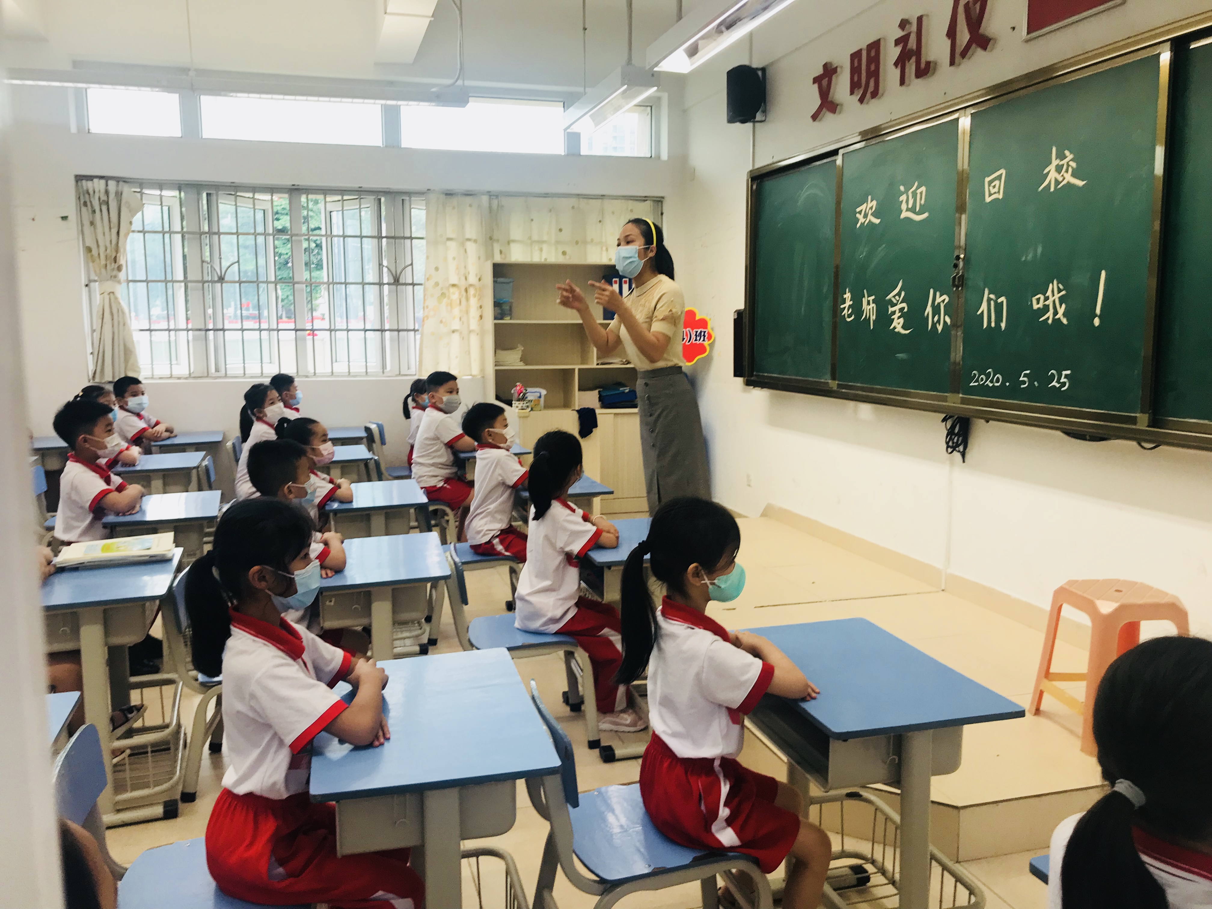 5月25日,广州市小学一、二、三年级返校复课。从化区约有三万名小学生返校。