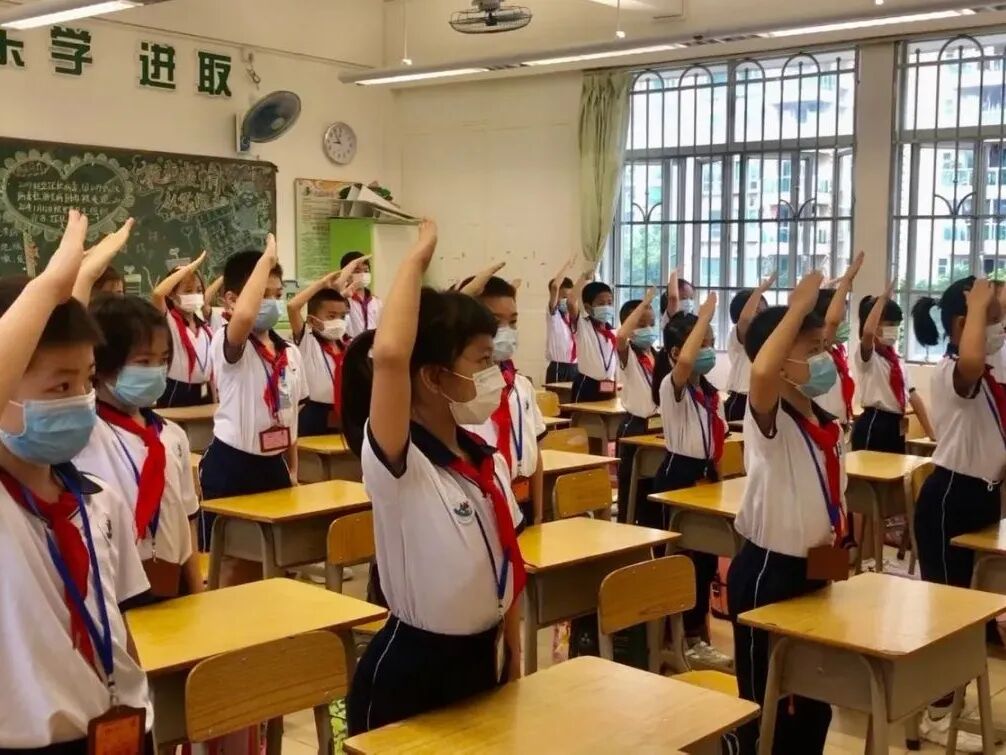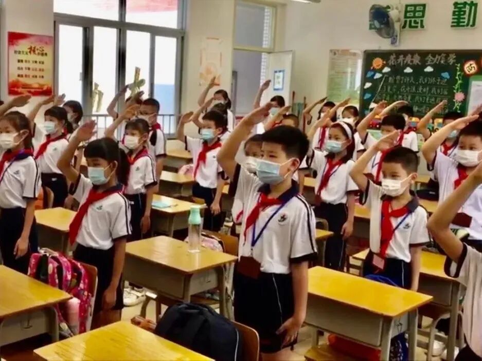 5月25日,广州一至三年级的小学生全面返校上学。在江海街的小学校园也加热闹了起来,孩子们显得精神十足,家长们也开心地表示,终于盼来了神兽归笼。