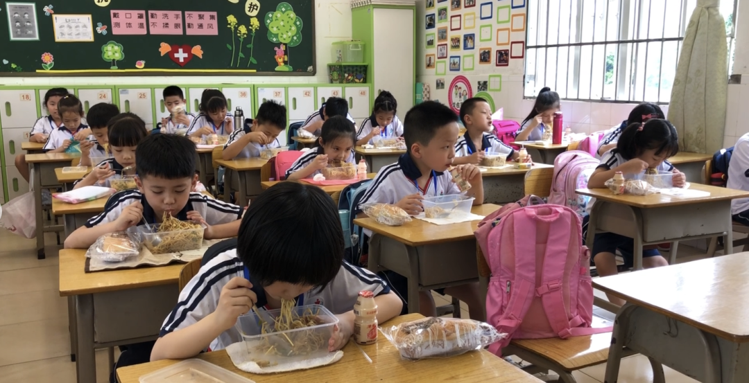 逸景第一小学:低年级复学首日留校进午餐