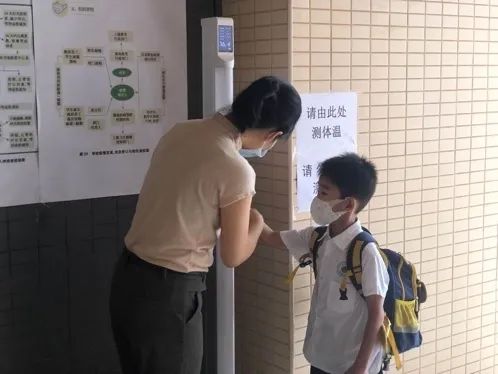 为了让孩子们顺利返校,学校早有准备,实行错峰返校,每位孩子贴上名牌。导航老师精准开启导航模式,萌娃们顺利通过测温,延着萌宝通道顺利回到课室。