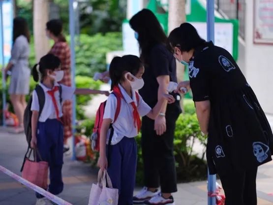 “同学,祝你本学期生活顺利,学习进步,来选择一个老师准备的小锦囊吧!”省实荔湾学校的萌娃们在老师的祝福中排队进入校门。为了欢迎萌娃回校,省实荔湾学校的老师们下了大功夫,提前准备好了手写的锦囊,上面满满都是对同学仔的祝福。