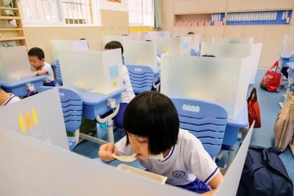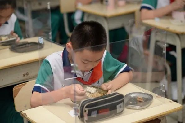 记者发现,在午餐期间,各班按照学校指引,定点定位分餐,分批错时就餐。此外,每个学生在就餐过程中都会放上属于自己的就餐隔离板。同时,就餐过程中,老师也会随时提醒以及监督学生做到就餐前不脱口罩,就餐时摆上隔离板,就餐后立刻佩戴口罩,餐前、餐后按七步法洗手。“每个孩子都有属于自己的就餐隔离板,使用后,各班正、副班主任都会根据要求进行严格的消毒,”学校负责人介绍道。