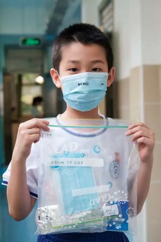 “小豆丁”们还佩戴“专属”口罩上学,每个口罩上印有学生名字,配有各种风格的图案。小荔了解到,学校要求低年级学生的家长为孩子打造“专属”口罩,以免孩子出现互换、误戴口罩现象。沙面实验学校常务副校长詹东玩表示,“专属”口罩没有硬性规定,风格由家长学生自由选择,最主要是孩子能辨认出自己口罩,不出现口罩混淆情况。孩子在二年(二)班就读的家长李女士告诉记者, “我给孩子选择的印章,除了有名字,还印有电话号码,方便老师及时与家长联系。”她表示,印章从网上选购。