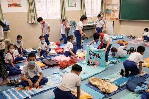 孩子进校还拿着被褥,这是什么原因呢?原来,学校为每个班级安排了两个课室,一个是上课、午餐时使用,一个是午睡时使用。午睡教室按照学号摆放了孩子的被褥,午餐过后,孩子在老师的带领下,在午睡教室“打地铺”进行休息。