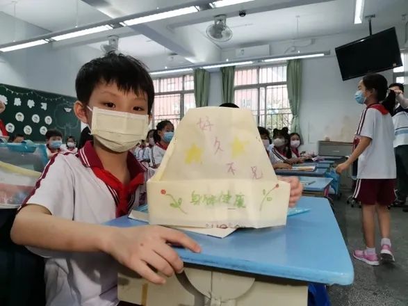 据了解,为了让孩子们能轻松地从线上学习过渡到线下学习,更好融入到班级生活中,班级老师陈艳从三月份就开始开始策划了一系列暖心复学活动。“之前通过沟通发现个别同学有遇到学习上的困难并存在对开学的焦虑,所以想通过这样一个活泼快乐的方式让他们感受到回到学校的温暖,回归到比较积极愉快的学习状态”班级老师陈艳告诉记者。
