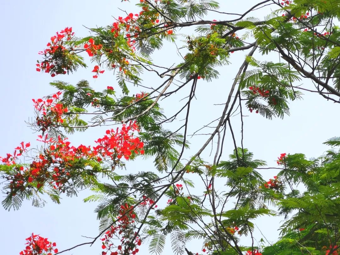 5月的夏日,又到了凤凰花开的时候,行走在广州的公园和街头,总能在万绿枝头中发现一抹耀眼的凤凰红,灿若云霞、红彤似火,成了这个夏日最绚烂的风景。