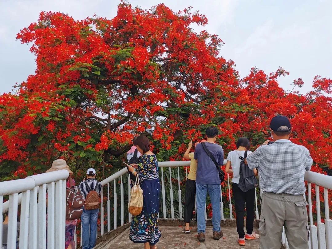 海印桥脚开得绚烂的凤凰木成网红打卡点