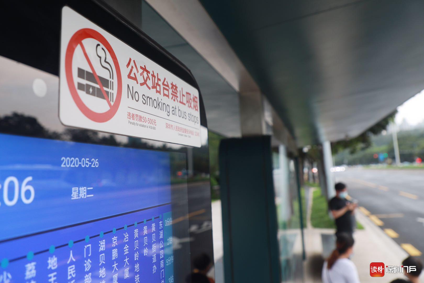 虽然执法中未发现吸烟行为,但公交站台垃圾桶上的“烟灰缸”却往往会误导市民此处可吸烟。
