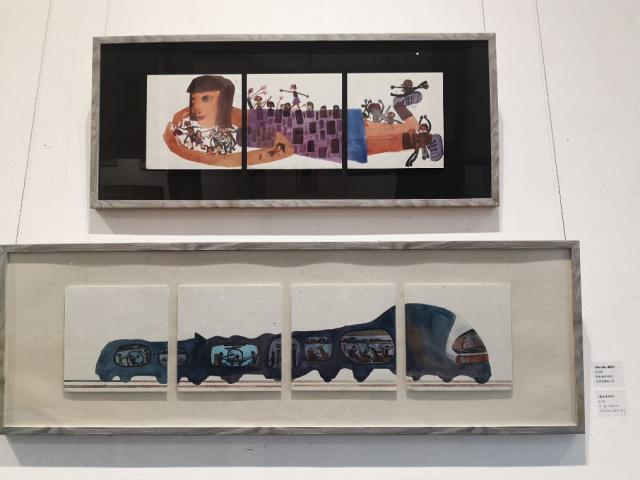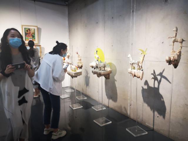 《蚕宝宝列车》《和小矮人玩耍》《复活的恐龙》《我与我的动物伙伴们》等,童趣盎然,诸多参观者不停拍照,留作纪念。