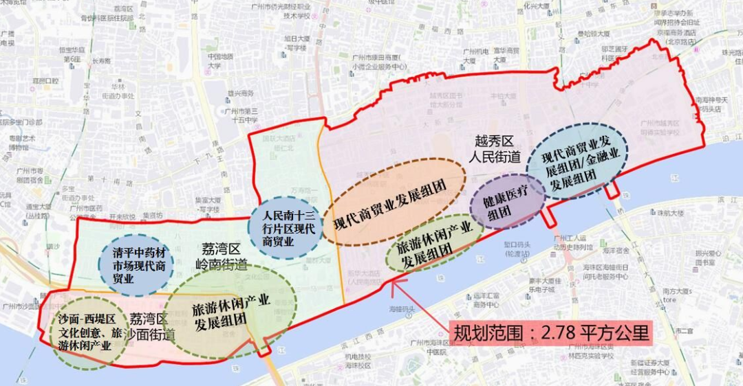 《规划》表示,该区域将重点打造现代商贸、金融、旅游休闲、健康医疗等4个产业组团,成为广州实现老城市新活力的典范。