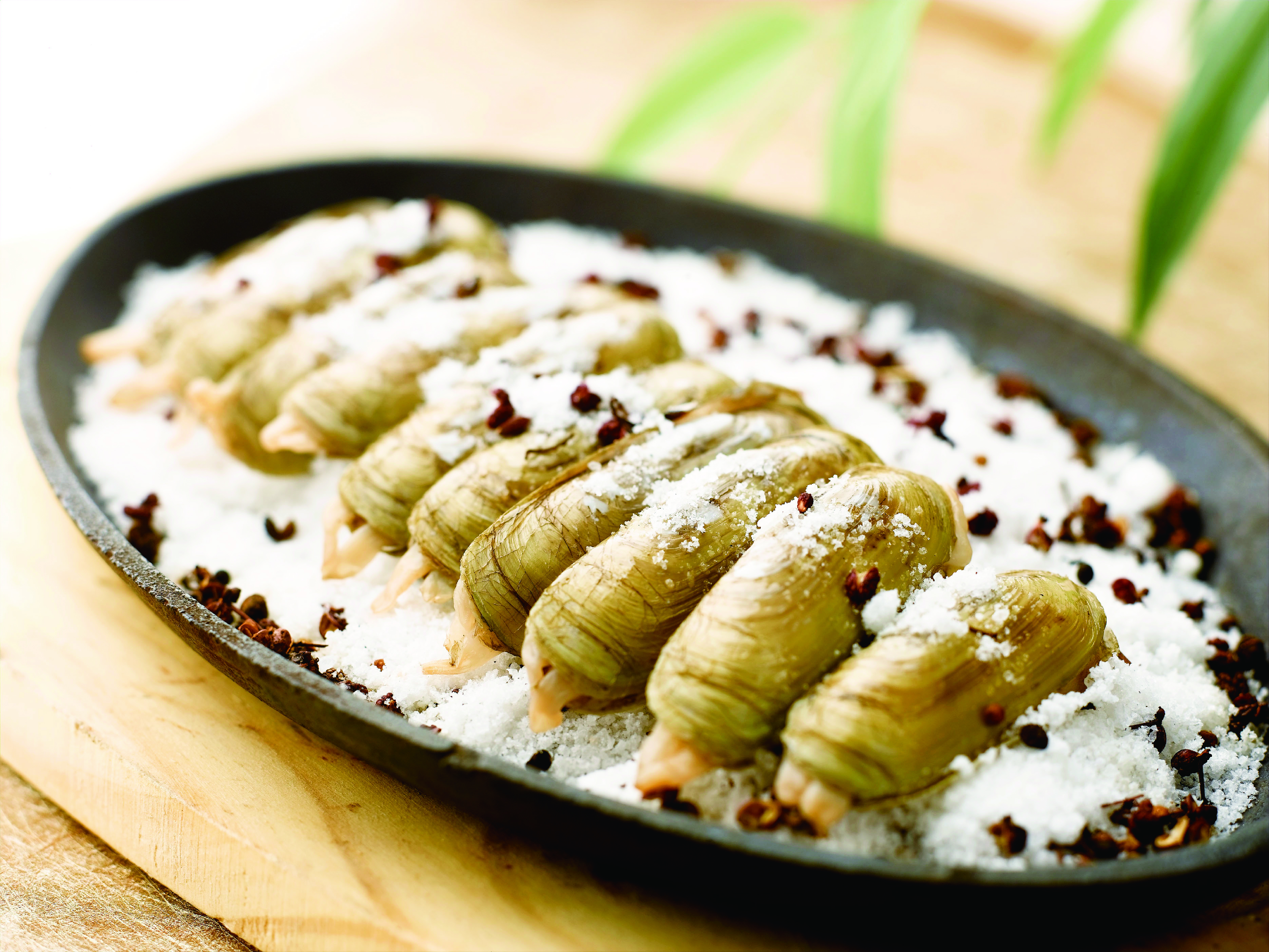 莆田人烹煮哆頭蟶,遵循「簡單即美」嘅原則,突出哆頭蟶獨有嘅鮮甜。莆田餐廳里嘅 「鐵板鹽焗蟶」亦係當地嘅經典做法,保留咗哆頭蟶嘅鮮美原味,花椒點綴其中,帶出獨特香氣。食果時將蟶肉蘸D海鹽,更香!