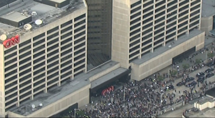 视频显示,部分示威者站在总部大楼前的CNN标志上,挥舞着印有“黑人的生命也是命”(Black Lives Matter)的旗帜,另外一些示威者则在CNN标志上用喷漆涂鸦。报道还称,示威者们在CNN中心外焚烧了一面美国国旗,并打碎了大楼入口处附近的玻璃。