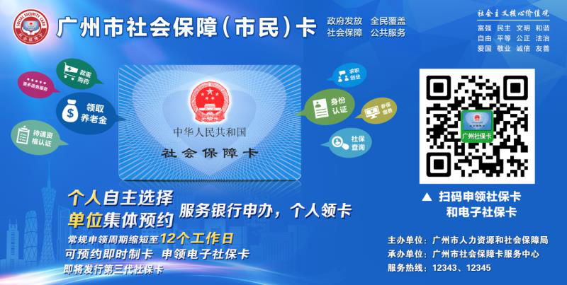 1.网上申领社保卡。可通过“穗好办”App社保栏目“社保卡申领”、访问广东政务服务网(www.gdzwfw.gov.cn),或其他由银行提供的网上申领社保卡方式。该业务适用于已办理居民身份证的人员。申领时可选择邮寄领卡(邮资到付)或在12个工作日后到银行网点领卡。