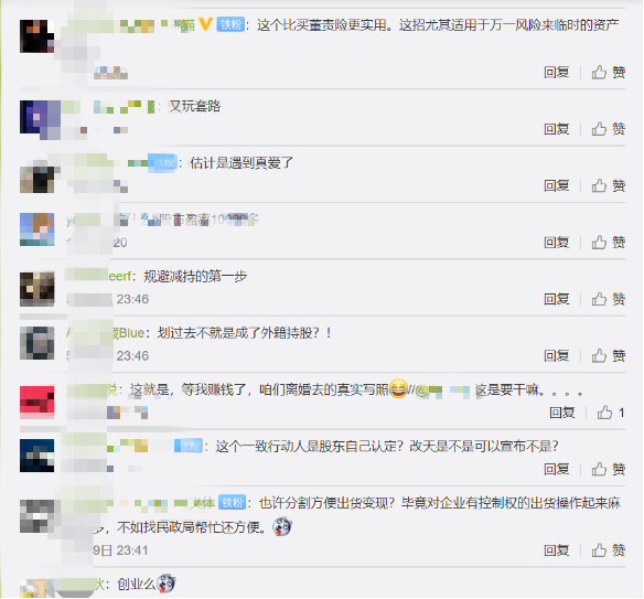 尽管对于不少股东来说,会比较担心因为实控人离婚套现等各种因素,导致公司股价下跌。但对于大部分人来说,围观上市公司高管“天价分手费”也是很开眼界的。