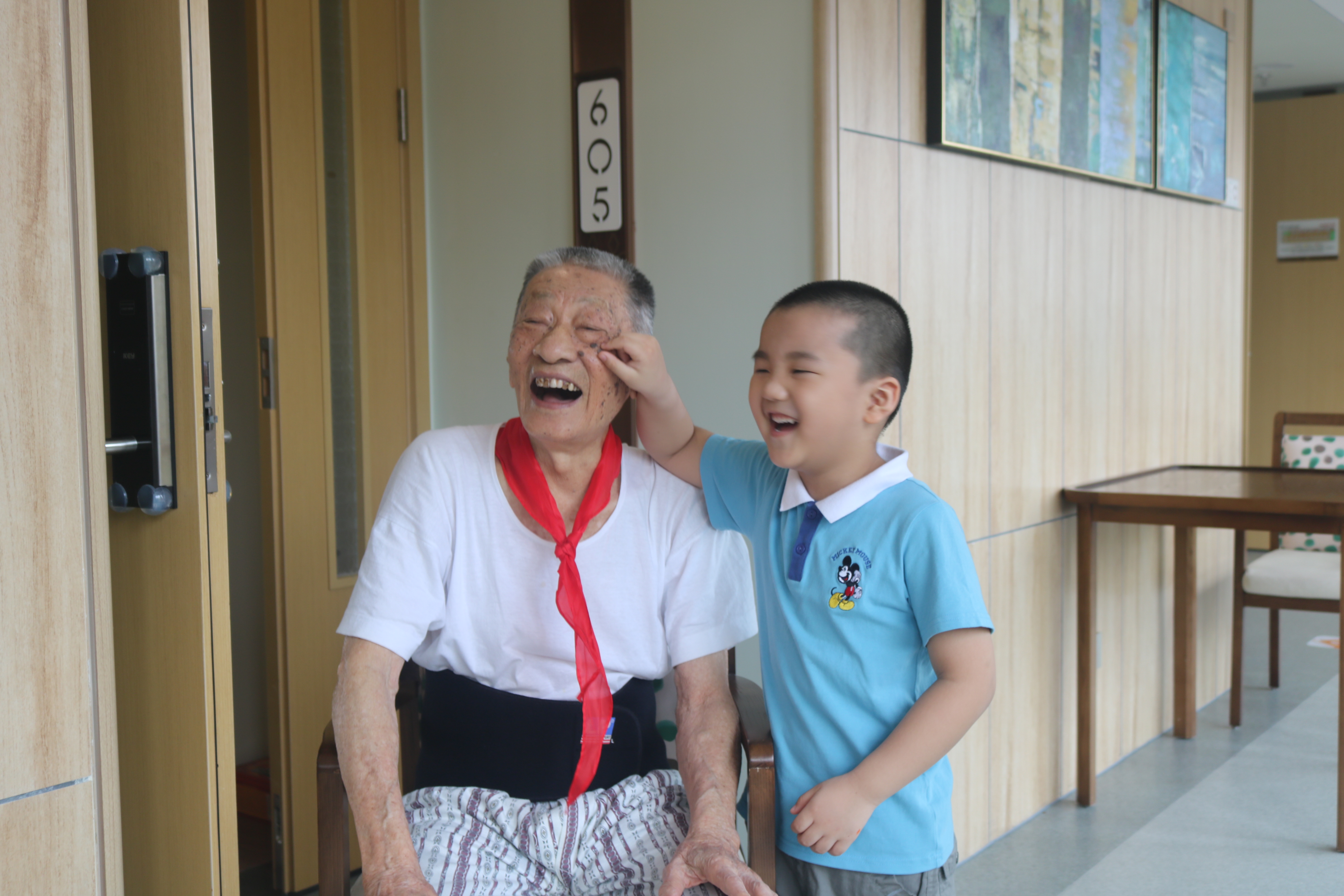 有意思的是,平日里被工作人员像孩子一样照顾的长者们,在小娃娃们面前却瞬间变身亲爱的“爷爷奶奶”,对小娃娃们百般呵护,疼爱后代之心满满。