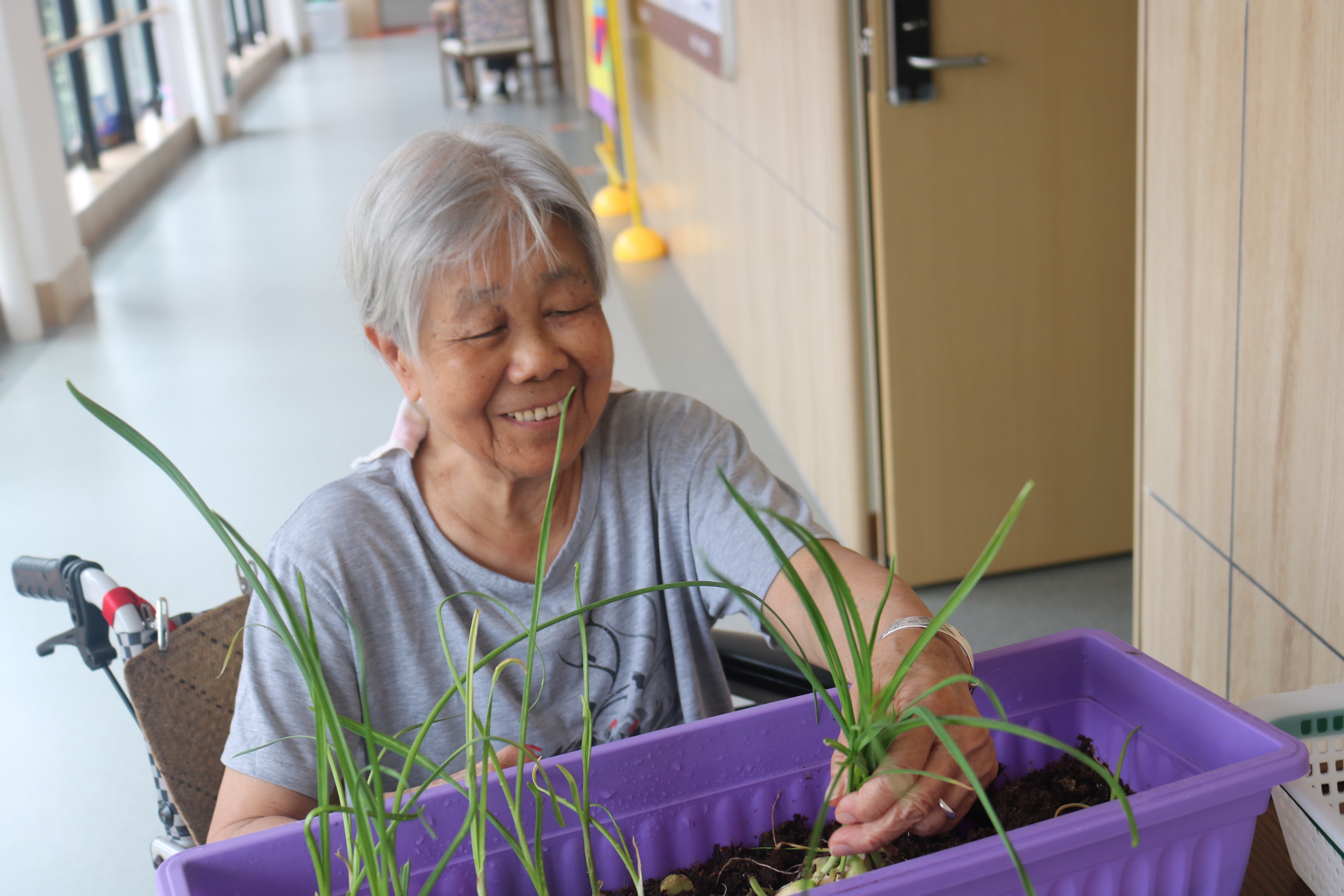 但就是这样的欧姨,对园艺种植活动却情有独钟。社工在邀请欧姨参加蔬菜种植活动时,原本因为腰腿痛躺在床上休息的欧姨,好似身体本能一样从床上立马坐起来,仿佛身体的疼痛已经消失,灵活得很。