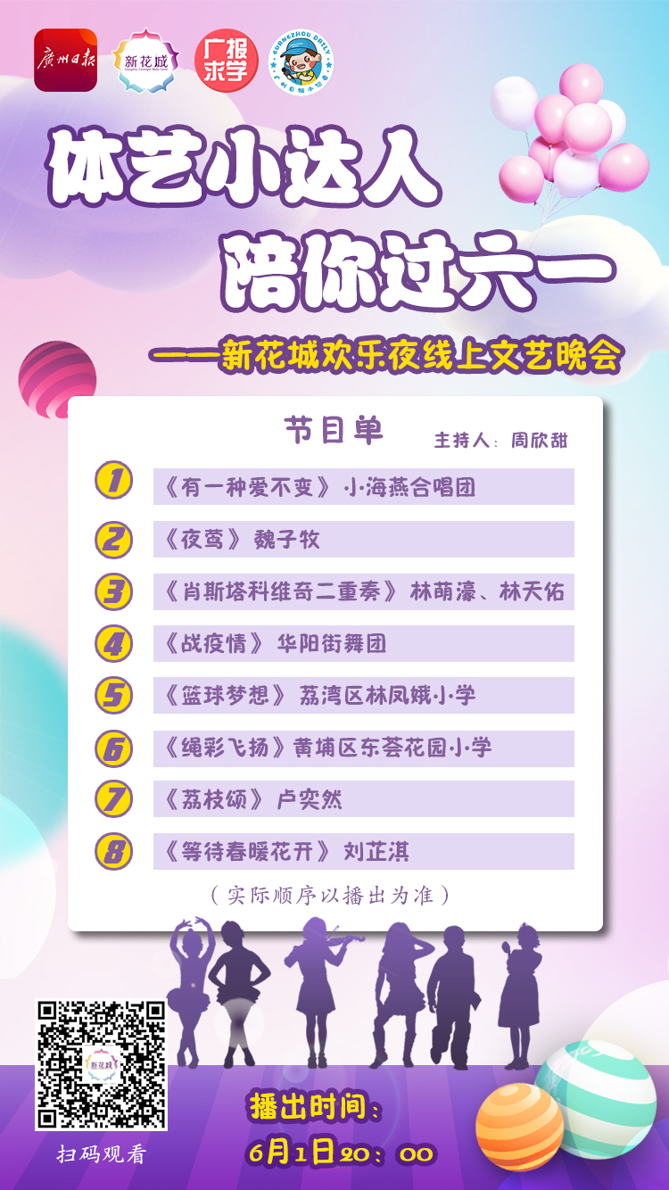 由广州日报社主办,“广州日报求学”、“广州日报小记者特训营”精心打造的新花城欢乐夜“六一”线上文艺晚会,将于今晚8点,在市级融媒体平台“新花城”APP播出。