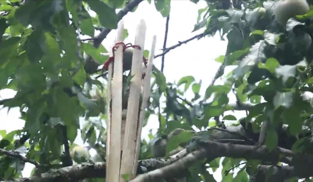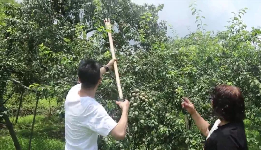 “溪头村这里主要是靠种养,果树多了就自然想到设计这个工具,利用现有资源,不用浪费。”村民航哥告诉记者,有些三华李树长得比较高,三华李果子结得也高,人工采摘就不是非常方便,于是村民们利用本村盛产的毛竹尾,设计了竹杆用来采摘高处的三华李,竹竿顶部开叉,村民用开叉口兜住三华李,再轻轻旋转扭动竹竿,三华李就顺着杆子掉了下来。