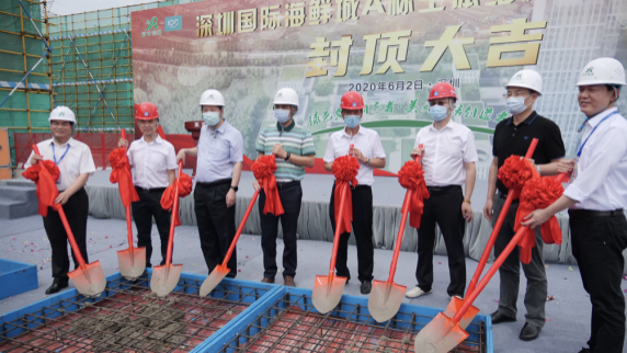 “深圳国际海鲜城”项目是深农集团投资建设的重点民生幸福标杆项目,也是市政府重点建设的“菜篮子”工程。据了解,项目自全面开工建设以来,深农集团旗下南方物流公司和中建八局等参建单位克服各类困难,鼎力合作,尤其是新冠疫情发生后,一手抓疫情防控,一手抓复工复产,在3月底即实现了百分百复工,确保了本次顺利封顶。