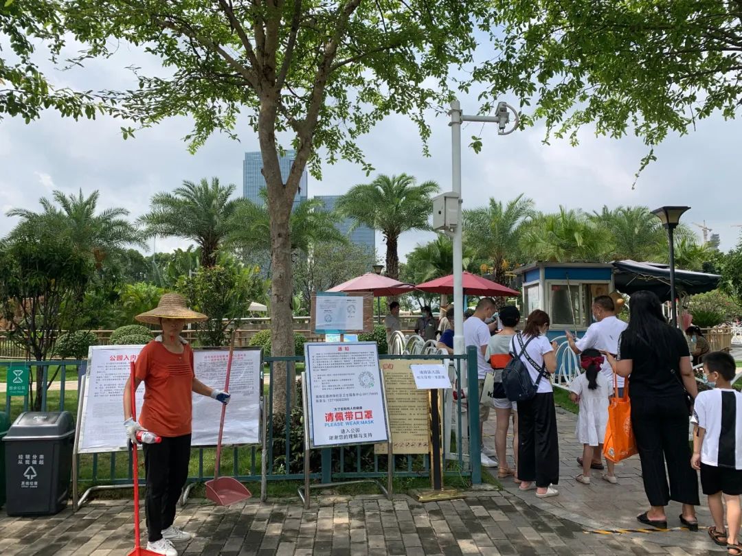 相关工作人员介绍,公园两入口(西门、北门)处设置体温测量点,要求进园游客自觉佩戴口罩并接受体温检测;做好“穗康码”宣传推广应用工作,要求进园游客进行穗康码健康通行登记,对无法使用智能手机的老人、小孩等特殊人群做好相关情况登记,公园管理人员做好游客出入扫码查验工作。