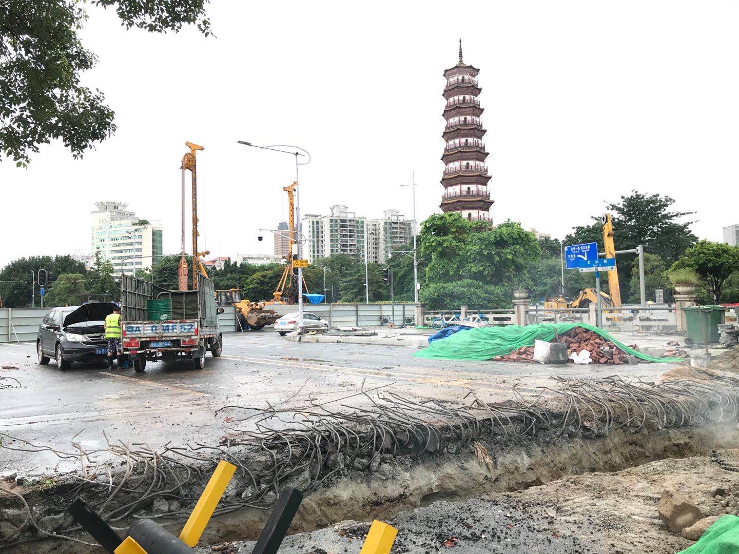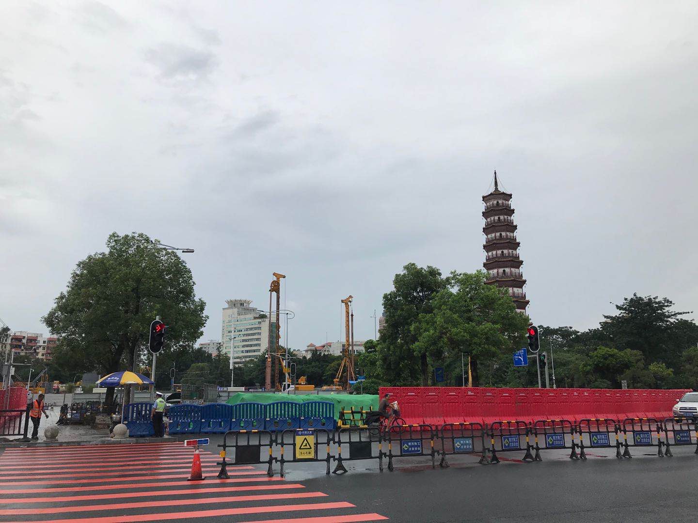 今日,记者在广州塔附近走访时发现,原赤岗塔对出至艺苑路口附近的艺洲路段围蔽施工。