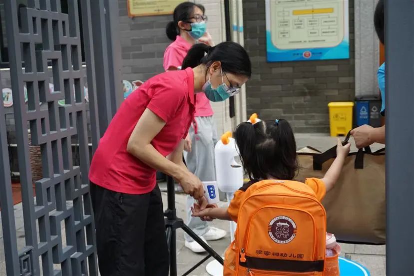 “早上好小朋友,注意排好队伍,要看好地上的黄线保持距离哦。”为了迎接孩子们的到来,梁家祠幼儿园的老师们一大早就在校园门口等候,测温、鞋底消毒、洗手,在老师们的耐心指引下,体温测量正常的孩子们脱下口罩,经过“入园三步骤”,井然有序进入幼儿园,接受每日常规的晨检。