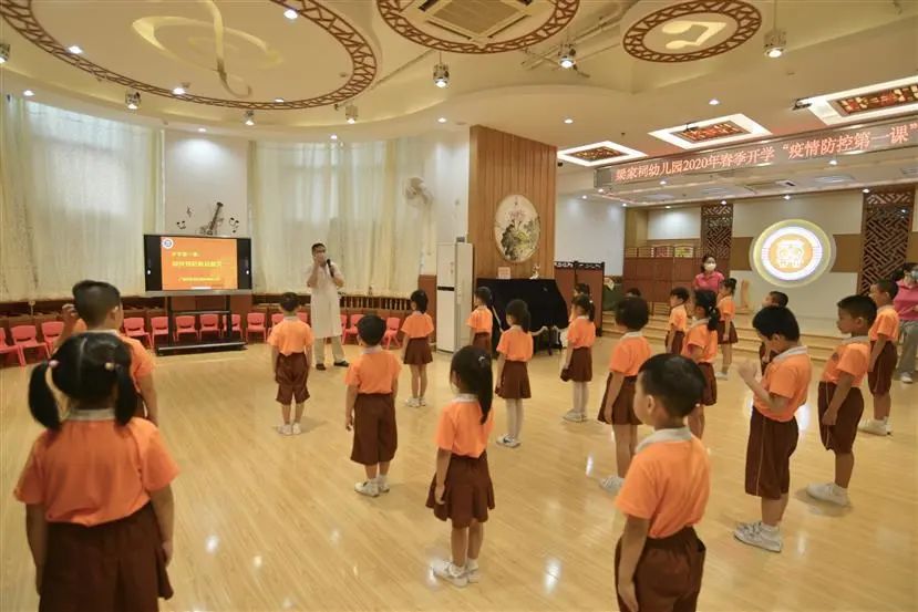 上午九点钟左右,幼儿园里开始了“疫情防控第一课”,因为是疫情防控的特殊时期,小朋友分批来到大厅,有序排队站好,听医生讲解如何做好预防新冠肺炎疫情,现场互动氛围良好,小朋友表示,会听医生和老师的话,多洗手不扎堆,做好自我防护。