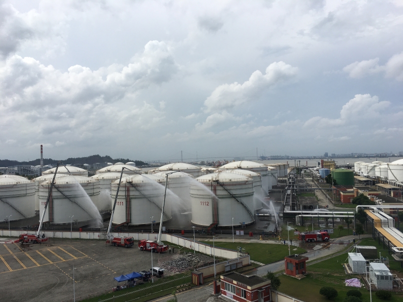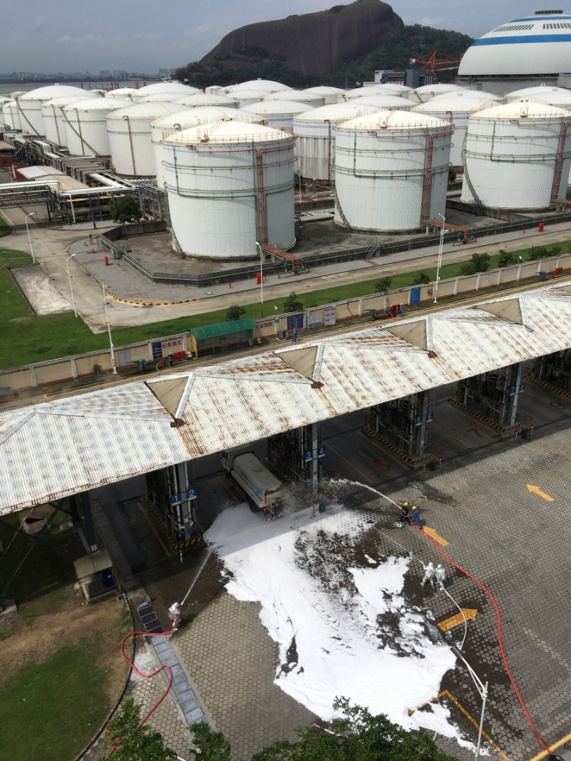 位于南沙的碧辟公司是大型化工储运企业,占地面积32万平方米,共有11个罐区,91个储罐,33个装车位,总库容67万立方米,涉及成品油和甲醇等十余种化工品,为一级危险化学品重大危险源单位。