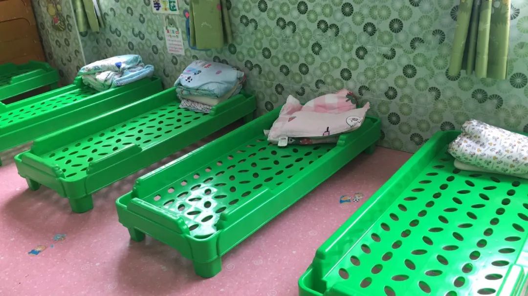 而午休时,每个孩子都是独立一张床,每张床间隔一定距离。孩子们午睡起床后,老师又会进行第三次体温测量,并观察幼儿精神状态。用过午点后老师会为孩子们进行梳洗整理,带孩子们开展活动,最后佩戴好口罩等待出托。
