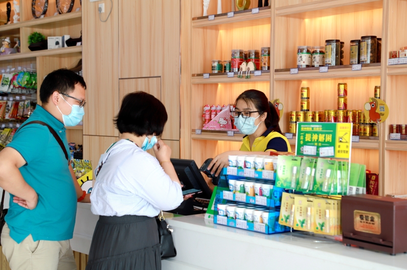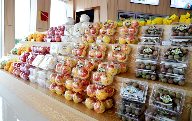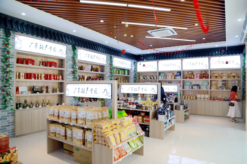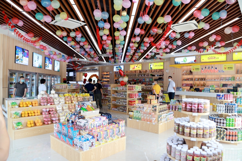 瓦窑岗服务区乐驿超市是粤运交通公司“大零售”试点的第一家形象门店,经营面积达342.5㎡,是升级前便利店面积的3倍,单店所售商品数超2500种,增加近2倍。超市主要划分土特产、生鲜蔬果、工艺品、粮油等售卖区以及现场加工区,广大出行旅客也能体验社区一站式购物乐趣。