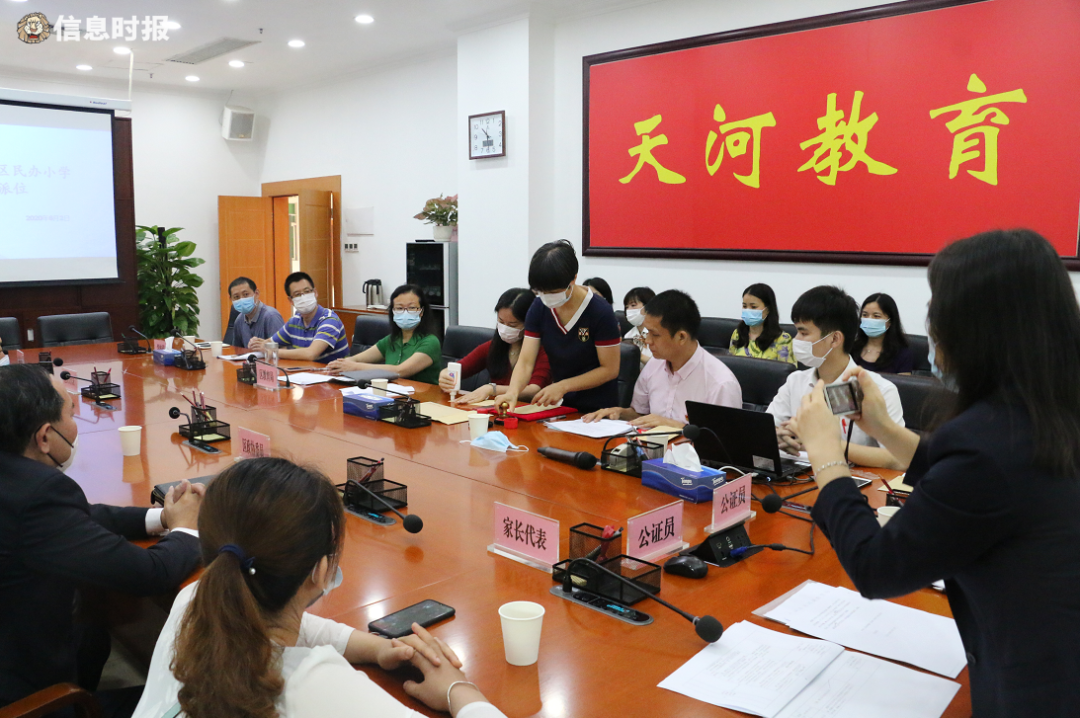 电脑派位结束后,广州市公证处对现场派位结果进行公证,电脑派位录取名单由天河区教育局领导现场签批并加盖公章,立刻生效。电脑派位录取结果于2日当天公布在各校门口。